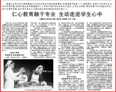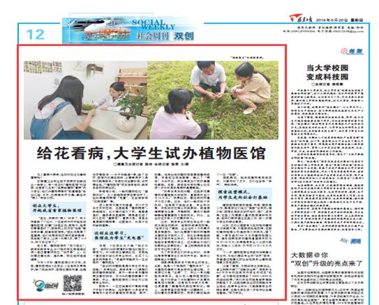 今年,我校《給花看病,藥學系學生試辦植物醫館》《仁心教育融于專業,生動走進學生心中》兩則新聞獲得福建日報報道。據了解,我校藥學系學生在校內開起我省首家植物醫館,當起了“植物醫生”,為當地群眾送來的植物進行現場治療服務,以前藥學專業學生一般畢業后多數成為藥店藥師、炮制師、調劑師等,現在企業對中藥材種植病蟲害防治方面人才需求也在不斷增大,學生通過依托學校創業基地提升自己專業能力,將為今后職業發展拓寬空間。