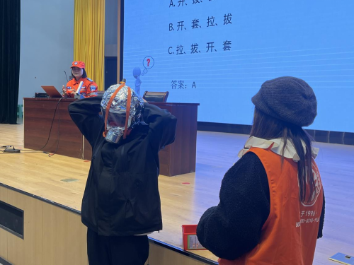 本次講座,從校園火災案情分析、危害性、常見消防安全隱患、火災自護自救及逃生四個方面展開,結合當下校園消防安全事故特點,著重開展學生宿舍火災、電動車火災的案例分析,通過一個個真實的案例,敲響學生心里消防安全的警鐘。講座間隙,陳秋平講師與到場學生開展問答互動,現場氣氛活躍;同時現場演示消防逃生用具的使用方法,讓學生真實體會掌握消防自救逃生技能的重要性。