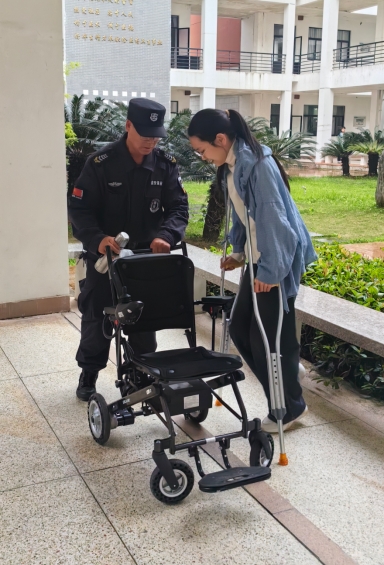 2025年4月27日,2025年全國護士執業資格考試在我校舉行,期間發生暖心一幕,考試現場一名腿部行動不便的考生得到了學校保安的熱心幫助。