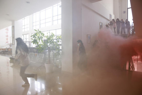 安全工作處根據演練要求和館內實際,預先制訂演練方案,對演練要求、工作人員的職責和分工等做了明確規定,并由安全工作處工作人員對參演師生進行培訓,讓師生們掌握正確的逃生方法,明確撤離方向、撤離路線、集合區域,以確保演練安全、有序進行。