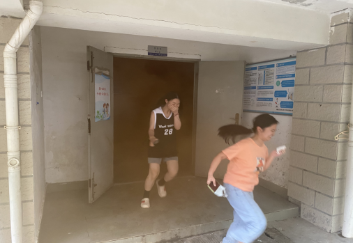6月7日下午4:00時,全體演練工作人員到位,學生進入各自宿舍就位。為取得良好演練效果,我處工作人員點燃煙霧,模擬真實的地震火災場景。演練開始,第一聲哨響,全體學生均意識到突發災難來臨,立即在墻角及桌邊蹲在躲避,5秒后第二聲哨響,全體學生捂住口鼻,按照逃生路線有序的、迅速的逃離宿舍并撤離到安全區域。本次演練總共用時1分49秒,達到演練預期效果。