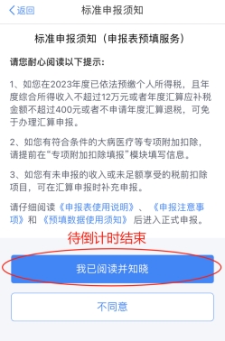 (二)閱讀標準申報須知,倒計時結束后,點擊“我已閱讀并知曉”