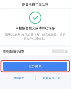 系統跳轉至繳稅頁面,點擊“立即繳稅”。