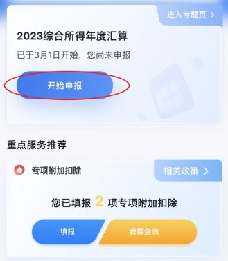 (一)打開并登陸“個人所得稅”APP,在“2023綜合所得年度匯算”下點擊“開始申報”