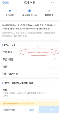 系統根據填報的信息,自動計算出“應補稅額”或“應退稅額”,顯示在左下方。