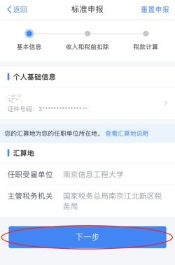 (三)確認“個人基礎信息”、“任職受雇單位”,確認無誤點擊“下一步”。