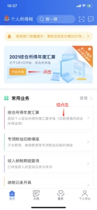 (一)打開并登陸“個人所得稅”APP,點擊“2021綜合所得年度匯算”或“常用業務”下的“綜合所得年度匯算”。