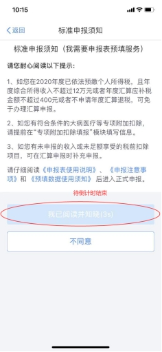 (四)閱讀申報須知,倒計時結束后,點擊“我已閱讀并知曉”。
