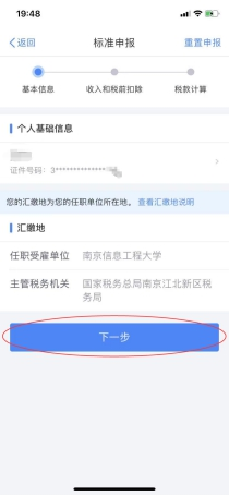 (五)確認“個人基礎信息”“任職受雇單位”,確認無誤點擊“下一步”。