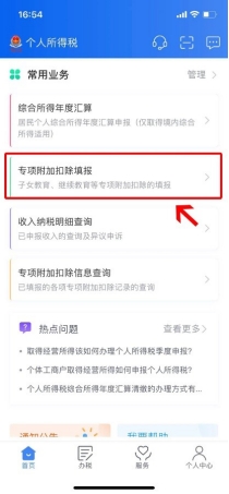 第一步:點擊首頁“專項附加扣除填報”。