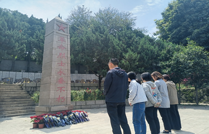 線下活動中,4月16日下午,支部全體黨員和黨員發展對象前往龜山烈士陵園,在這里長眠著108位在110、723野戰醫院中犧牲的革命烈士。在烈士紀念碑前大家莊嚴肅立,低頭哀思,懷著崇敬的心情向革命烈士默哀三分鐘。活動中,大家紛紛表示:時間的長河流淌不息,卻沖不淡我們對革命先烈的緬懷,他們為了百姓的利益與安全、尊嚴與榮譽,無私奉獻,無怨無悔。平凡的英雄們是歷史長河里最為壯闊的美景,而不懈的奮斗則是我們對英雄最好的致敬。革命先烈的無私奉獻精神這么偉大,令我們動容,他們雖然離開了我們,但他們的力量與光芒將繼續照亮我們前行的路。我們更要珍惜來之不易的生活,更要懂得肩負的歷史責任和使命。通過線上學習英烈精神,線下瞻仰烈士紀念碑,通過獻花、點燭、鞠躬、寄語、瞻仰等方式,我們身臨其境感受莊嚴氛圍,寄托哀思。我們應時刻銘記他們的貢獻,向他們致以最崇高的敬意。