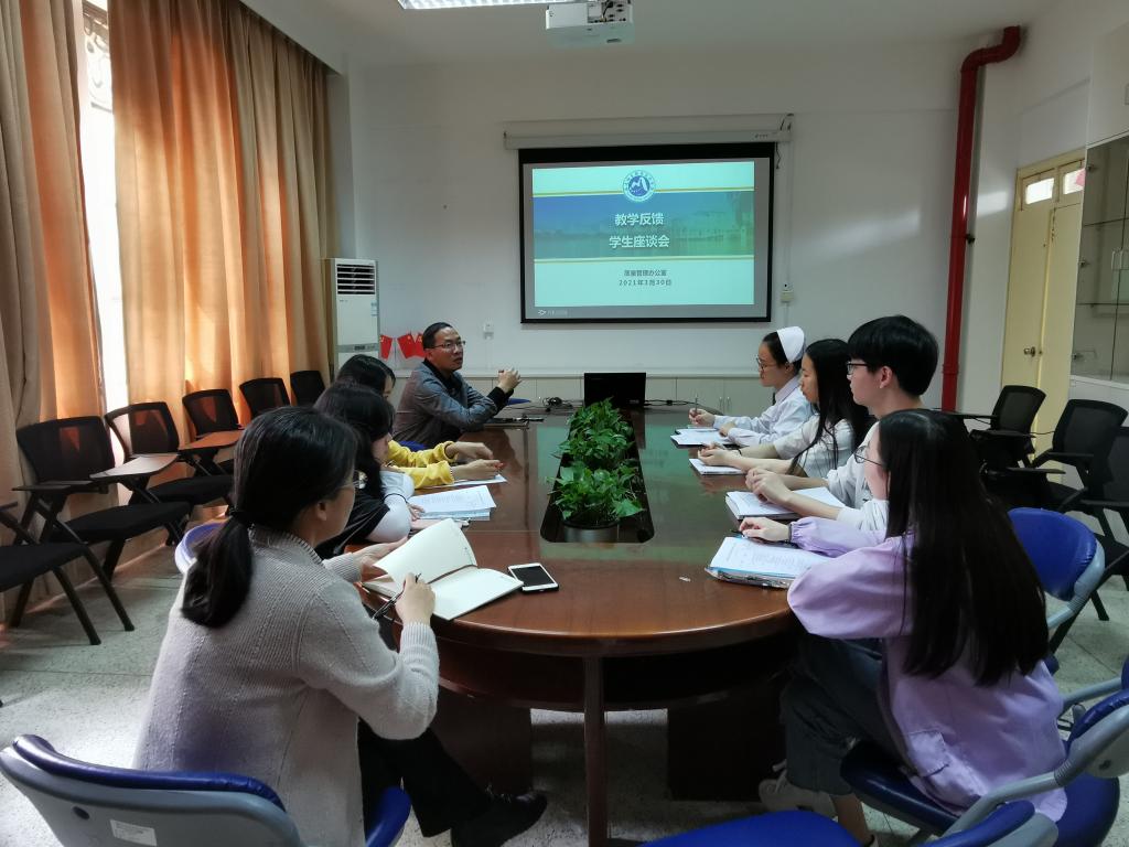 2021年3月30日中午,質(zhì)量管理辦公室在馬克思主義學(xué)院會議室召開“教學(xué)反饋學(xué)生座談會”,質(zhì)量管理辦公室主任郭禮堅(jiān)、副主任王珊珊等人員和各二級院系學(xué)習(xí)部部長參加了座談。會議由郭禮堅(jiān)主持。