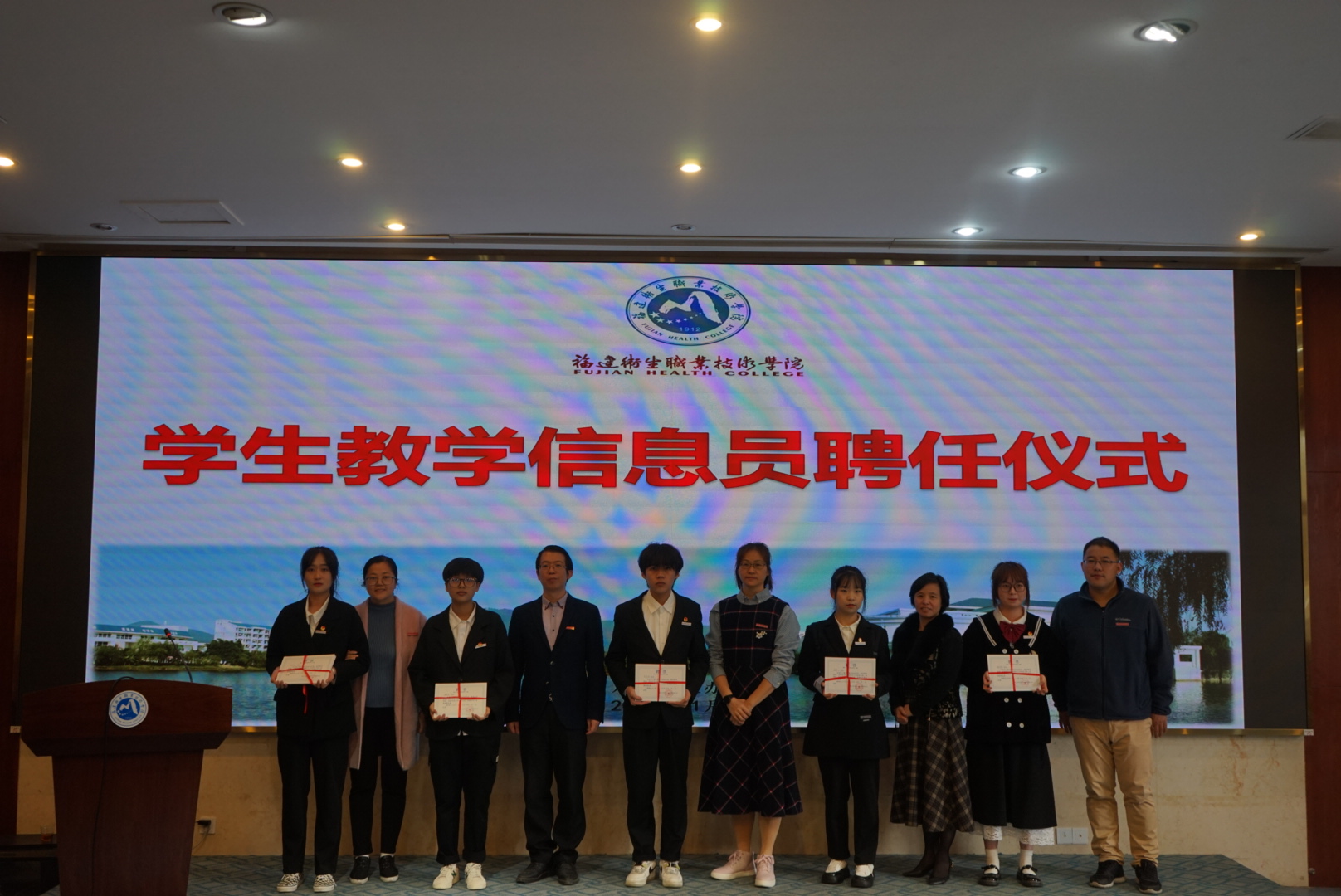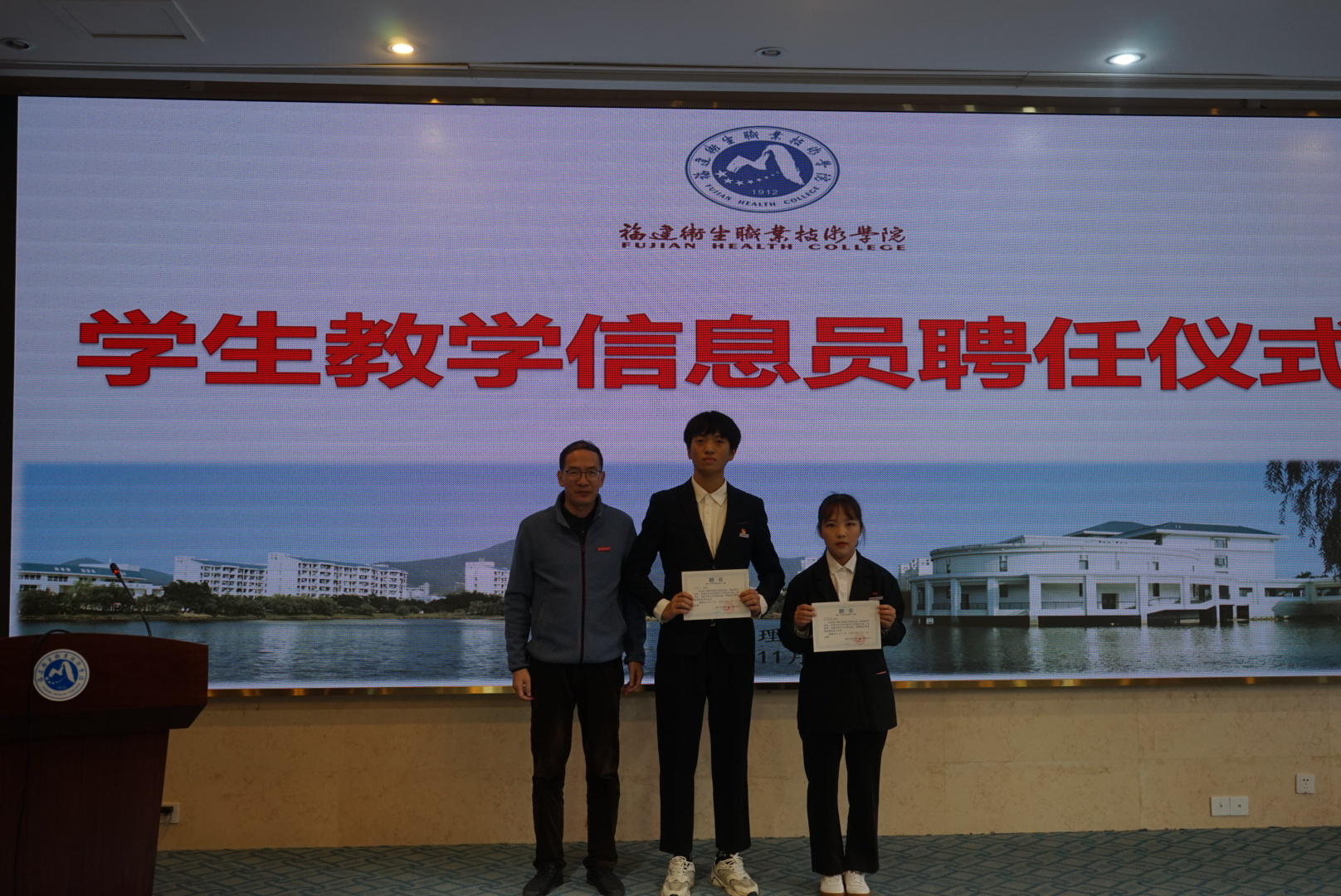 質(zhì)量管理辦公室副主任王珊珊、李燕平為學(xué)生教學(xué)信息站站長(zhǎng)頒發(fā)聘書