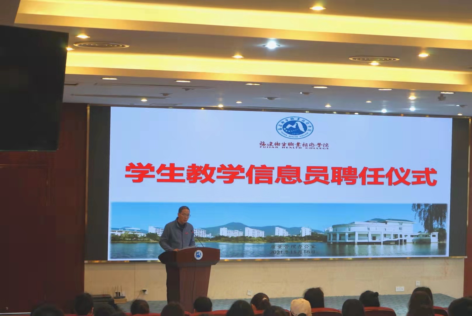 我校教學(xué)信息員隊(duì)伍中,共設(shè)有校級(jí)學(xué)生教學(xué)信息中心主任2名,二級(jí)院(系)級(jí)教學(xué)信息站站長(zhǎng)10名,教學(xué)信息員166名。教學(xué)信息員管理工作由教學(xué)信息中心主任總負(fù)責(zé)。各二級(jí)學(xué)院(系)教學(xué)信息站站長(zhǎng)負(fù)責(zé)本二級(jí)學(xué)院(系)教學(xué)信息員的日常管理。本次聘任儀式的召開,旨在充分調(diào)動(dòng)全體學(xué)生信息員的主動(dòng)性和積極性,增強(qiáng)學(xué)生自我管理、自我教育的意識(shí),鼓勵(lì)學(xué)生積極參與學(xué)校教學(xué)管理,營(yíng)造積極向上的學(xué)習(xí)氛圍和優(yōu)良的教風(fēng)學(xué)風(fēng)。