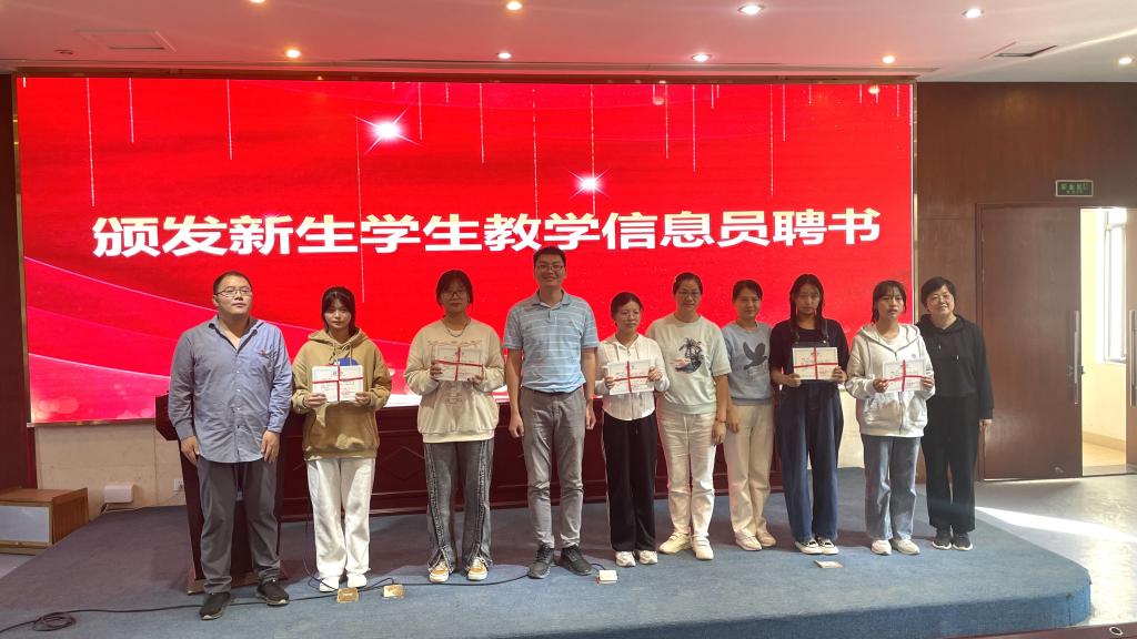 接著,各院(系)副主任宣為新生學(xué)生教學(xué)信息員頒發(fā)聘書。