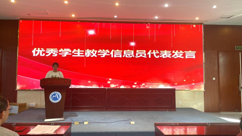 隨后,優(yōu)秀學(xué)生教學(xué)信息員代表戴嘉宜上臺(tái)發(fā)表感言。她分享了自己在擔(dān)任信息員期間的經(jīng)歷和收獲,表達(dá)了對(duì)學(xué)校教學(xué)管理工作的支持和對(duì)未來工作的期望。