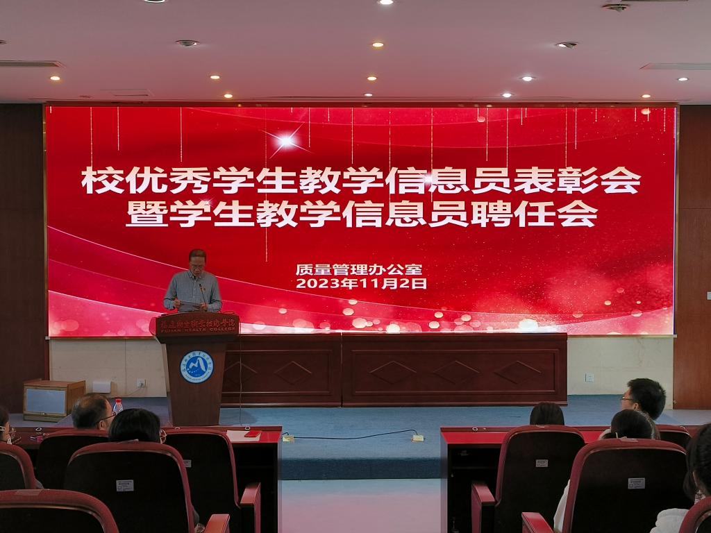 為表彰校優(yōu)秀學(xué)生教學(xué)信息員,同時(shí)聘任新一屆學(xué)生教學(xué)信息員,以推動(dòng)學(xué)校教學(xué)質(zhì)量的提升,2023年11月2日下午,質(zhì)量管理辦公室在實(shí)訓(xùn)樓四樓會(huì)議室舉行校優(yōu)秀學(xué)生教學(xué)信息員表彰會(huì)暨學(xué)生教學(xué)信息員聘任會(huì)。質(zhì)量管理辦公室、各院(系)副主任以及全體學(xué)生教學(xué)信息員參加。