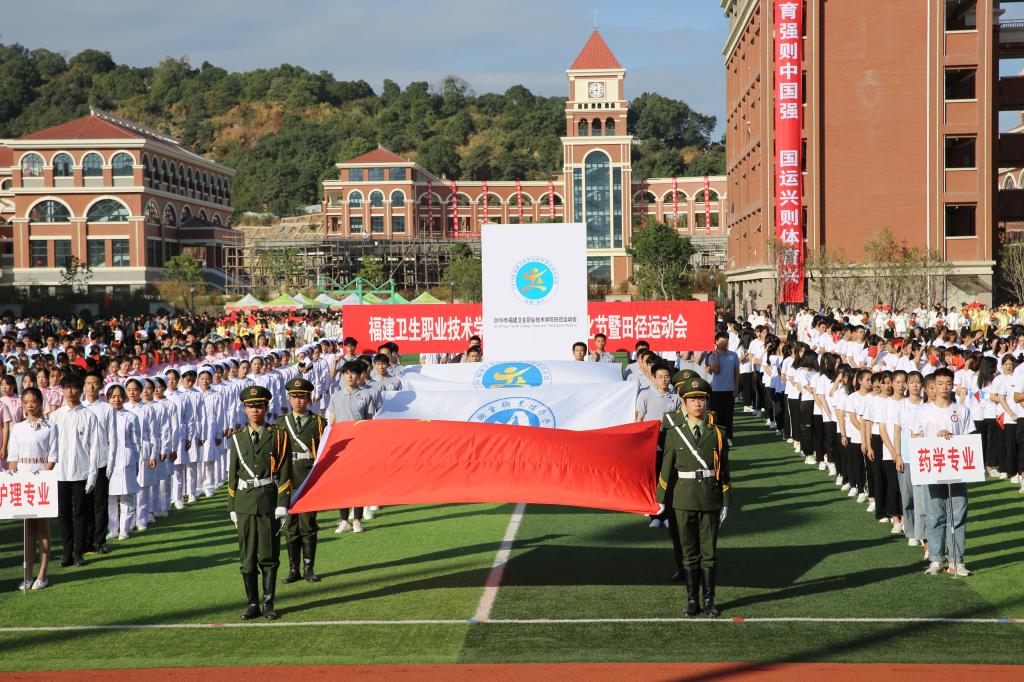 秋高氣爽,彩旗飄揚。11月2日,福建衛生職業技術學院2019年體育文化節暨田徑運動會隆重開幕。校領導曾武祈、蘇友新、李美華、陳貞健、黃銘珊、鄭翠紅出席開幕式。副校長陳貞健主持開幕式。