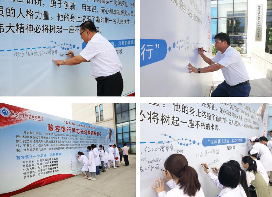 全體師生們受慕容慎行同志作為人民好醫生、人民好教師的崇高品格和精神風貌所感染。報告會后,師生代表們紛紛在留言墻上留下自己的感悟。