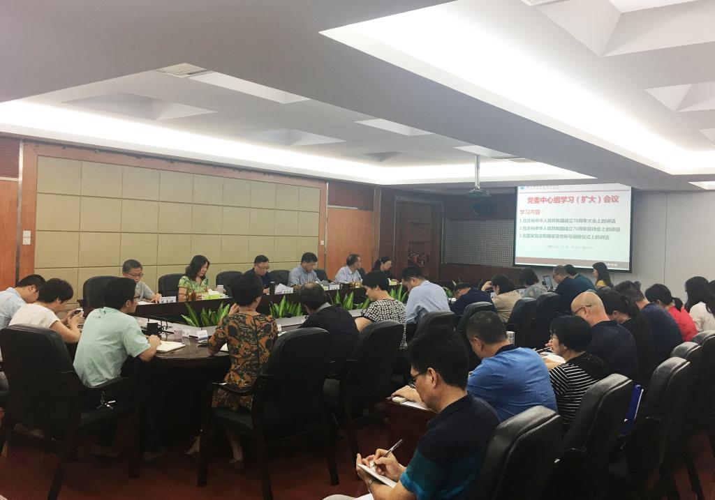 10月9日下午,黨委書記曾武祈主持召開黨委中心組學(xué)習(xí)(擴大)會議,學(xué)習(xí)《習(xí)近平2019年9月29日在國家勛章和國家榮譽稱號頒授儀式上的講話》《習(xí)近平在慶祝中華人民共和國成立70周年招待會上的講話》和《習(xí)近平2019年10月1日在慶祝中華人民共和國成立70周年大會上的講話》。參加會議的有院領(lǐng)導(dǎo)及全體中層干部共50余人。