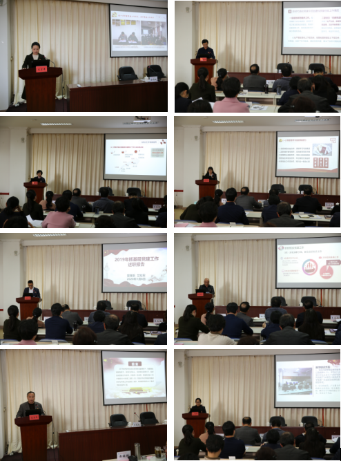 會上,八位黨總支(直屬黨支部)書記就學習貫徹習近平新時代中國特色社會主義思想情況、落實基層黨建重點任務情況、集中開展軟弱渙散基層黨組織專項整治情況、新時代高校黨建示范創建和質量創優工作情況、問題整改情況和履行基層黨建工作責任情況等方面,逐一現場述職。離退休黨總支提交書面述職報告,不參與現場述職。述職結束后,與會人員對述職情況進行了評議投票。