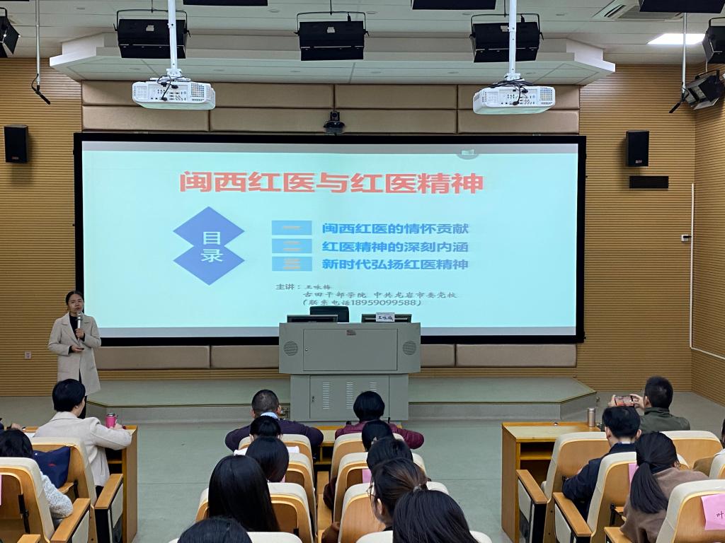 12月7日,我校邀請中共龍巖市委黨校(古田干部學院)王詠梅副教授到校開展《閩西紅醫與紅醫精神》主題講座。護理學院、醫學系黨員教師及積極分子代表、組織統戰部黨支部等60余人參與學習。