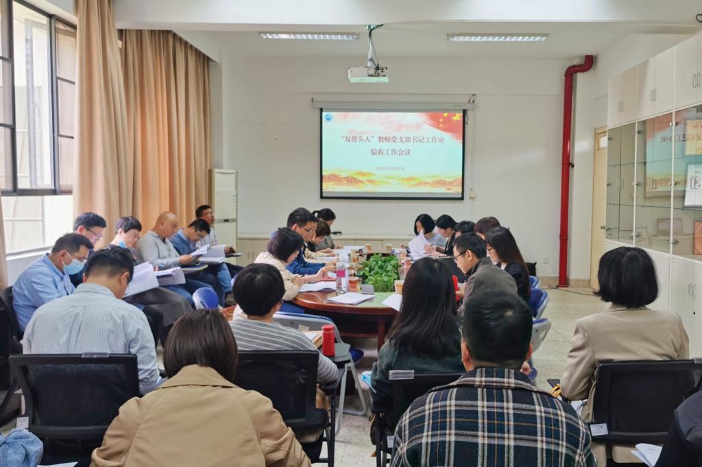 4月21日下午,我校召開了“雙帶頭人”教師黨支部書記工作室驗收工作會議,黨委副書記李美華、組織統戰部和院系黨總支負責人、專職組織員、教師黨支部書記參加會議,會議由組織統戰部部長謝濤主持。