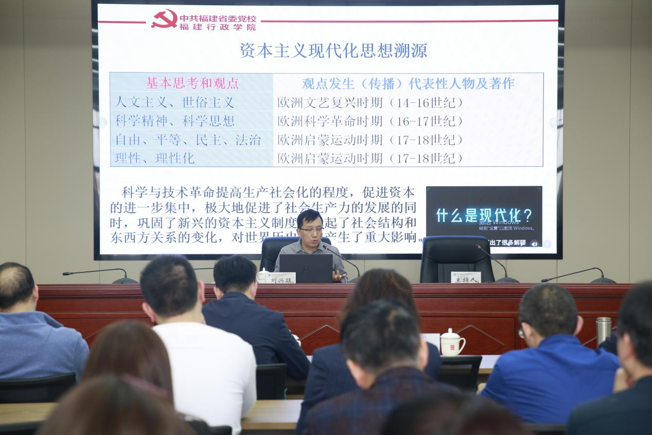劉興旺副教授作“以中國式現代化全面推進中華民族偉大復興”專題輔導報告,他從中國式現代化的歷史邏輯、理論體系和實踐要求三個方面,系統梳理了中國式現代化的理論內涵和實踐路徑,強調指出,推進中國式現代化,黨員領導干部要提高認識,走前頭、做標桿、擔重任。