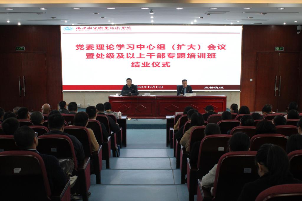 講座結束后,舉辦了學校處級及以上干部黨的二十屆三中全會專題培訓班結業儀式,曾武祈強調要以此次輔導為契機,運用好專題培訓的成果,在全面學習把握、貫徹落實上持續下功夫,堅定不移地把黨的二十屆三中全會精神落實到統一思想上、落實到具體行動上。一要始終堅持深學細悟、內化于心,永葆對黨的絕對忠誠。帶著感情、帶著使命、帶著信仰,把學習黨的二十屆三中全會精神、全國教育大會精神,與學習習近平總書記來閩的重要講話精神緊密結合起來,一體聯動學、深入思考學、聯系實際學。二要始終堅持全員學習、全域覆蓋,切實凝聚強大精神力量。學習宣傳貫徹黨的二十屆三中全會精神,是一個常學常新、不斷深化的過程。我們要持續加大力度、拓展深度、延伸廣度,不斷增強學習宣傳的理論深度、實踐力度、情感溫度。三要始終堅持篤信篤行、實干苦干,強化擔當作為推動發展。學習宣傳貫徹黨的二十屆三中全會精神,最關鍵的是不折不扣抓貫徹、全力以赴抓落實。各二級黨組織、各職能部門要把學習貫徹黨的二十屆三中全會精神與謀劃推動學校高質量發展、抓好當前工作緊密結合起來,按照2024年年終工作和2025年開局工作的要求,找準工作的切入點、結合點、著力點抓好貫徹落實。