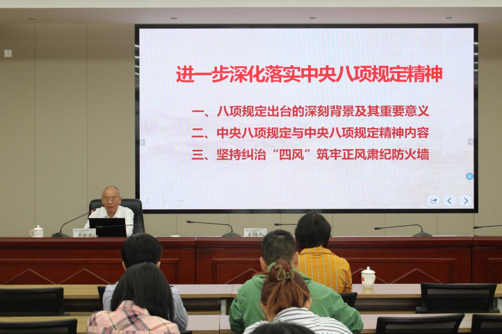 講座中,李新生從八項規定出臺的深刻背景及其重要意義、中央八項規定與中央八項規定精神內容、堅持糾治“四風”筑牢正風肅紀防火墻等三個方面系統闡述了中央八項規定精神的豐富內涵與實踐要求,為進一步深入貫徹中央八項規定精神學習教育提供了科學指導。