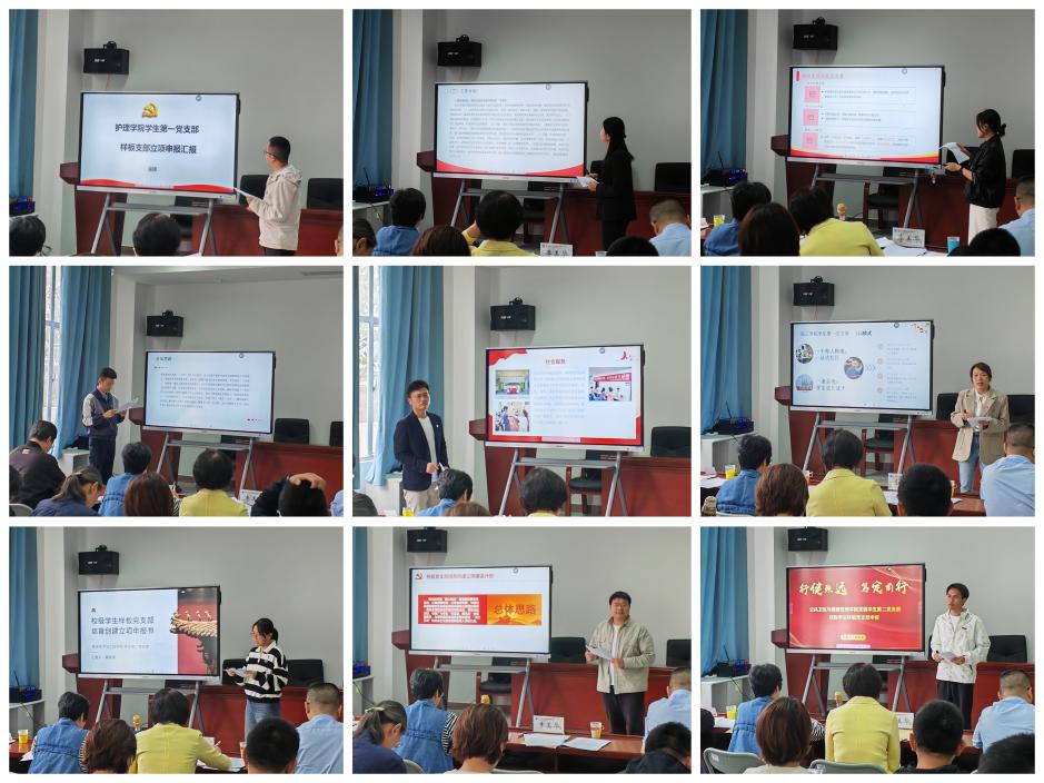 接著,9位學(xué)生黨支部書記作校級(jí)學(xué)生樣板支部申報(bào)匯報(bào),各黨支部書記圍繞“黨建+”主題,展示創(chuàng)建亮點(diǎn)和特色成果。評(píng)委們綜合申報(bào)材料匯報(bào)情況,評(píng)選推薦6個(gè)黨支部列入校級(jí)學(xué)生樣板黨支部創(chuàng)建單位。