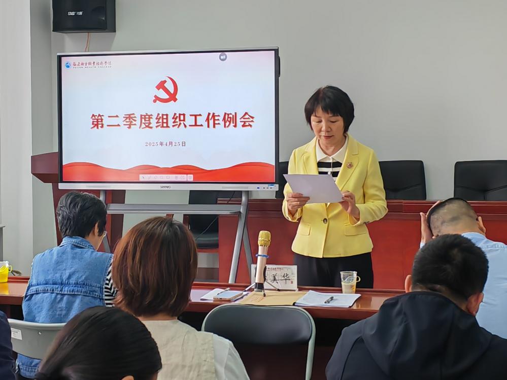 為聚焦黨支部建設(shè)重點(diǎn)任務(wù),4月25日,學(xué)校召開第二季度組織工作例會(huì),黨委副書記李美華,各二級(jí)黨組織書記、副書記,專職組織員,學(xué)生黨支部書記,組織統(tǒng)戰(zhàn)部工作人員等三十余人參加會(huì)議。會(huì)議由組織統(tǒng)戰(zhàn)部副部長黃小芳主持。