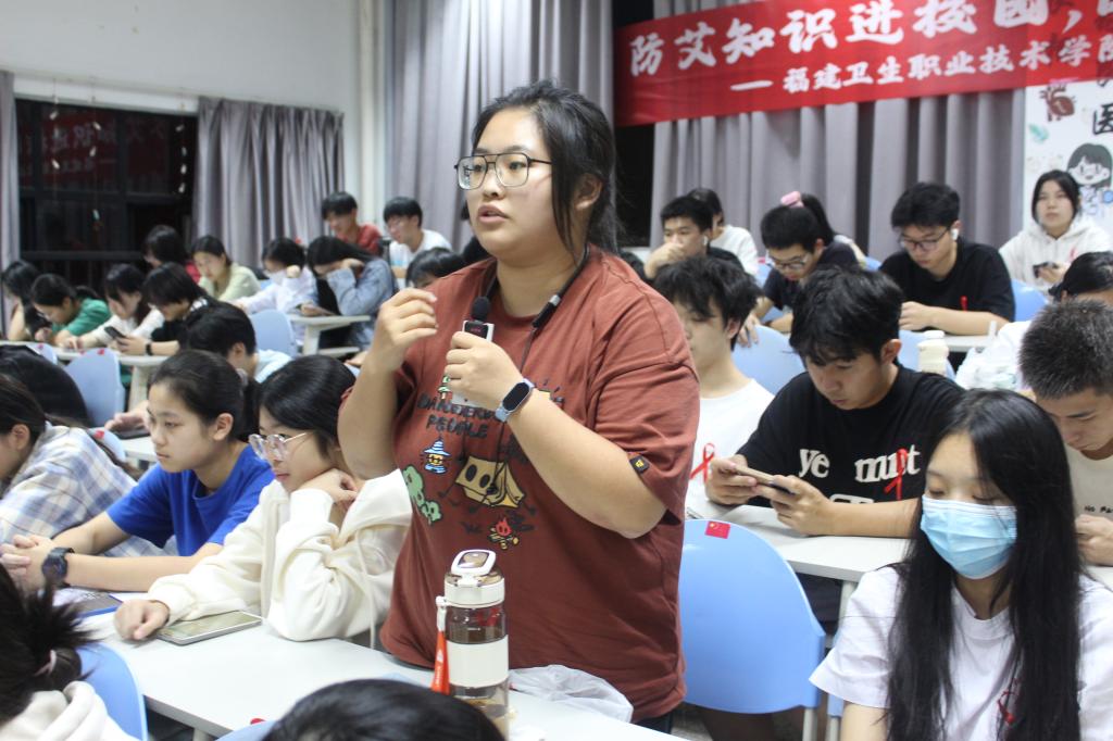 為了增強講座的互動性和實效性,潘主任特意設置了問答環節。這一環節激發了現場同學們的濃厚興趣,大家紛紛舉手提問,潘蘊蛟就艾滋病的傳播途徑、檢測方法、疫苗研發等問題為同學們一一解答,消除了大家的疑慮和困惑,使大家對防艾知識有了更加深入的了解。
