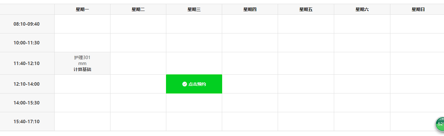 選擇所需要的時間段,點擊綠色部分按鈕,點擊預約