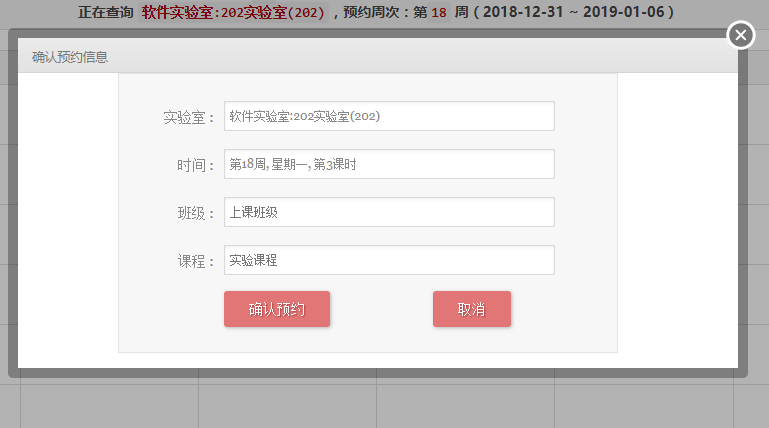 填寫完預約界面后,按確認預約,預約成功后會在預約的時間段上,標記出班級和課程。