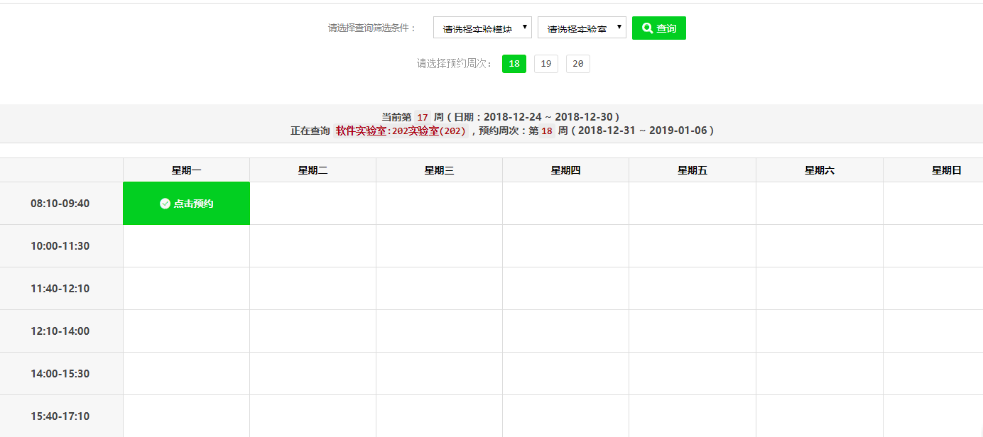 選擇完后點擊查詢即可查到對應實驗室的課表安排