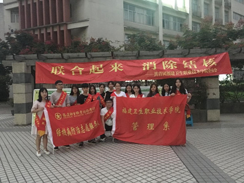 為促進和提高大學生結核病防治知識普及率,優化結核病控制支持環境,2017年10月19日,由共青團福建衛生職業技術學院委員會主辦,管理系團總支和院紅十字急救培訓部共同承辦的以結核病防治知識為宣傳重點的“聯合起來,消除結核”交流宣傳活動在福建藝術職業學院正式舉行。