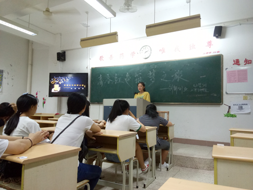 管理系團總支組織委員陳鉆強同學到16美容301班進行宣講。