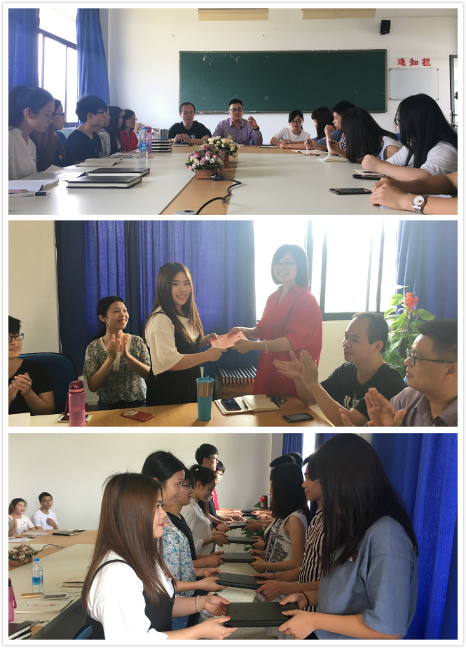 交流會上,艾松軍副書記向15級團學干部一年以來的工作表示充分的肯定和衷心的感謝,并指出作為兩委會的學生干部要有意識地培養創新思維能力;要學會做事,從點滴做起,在做的過程中注重培養團結協作能力;要學會做人,這是我們的立身之本,更是生存之道。他強調新老干部交流會是一次全新的開始,希望新老團學干部可以多交流,相互促進。最后,邱麟老師向2015級團學干部代表授聘書,同時2016級新一屆團學干部向2015級前輩送上了自己的一份心意。