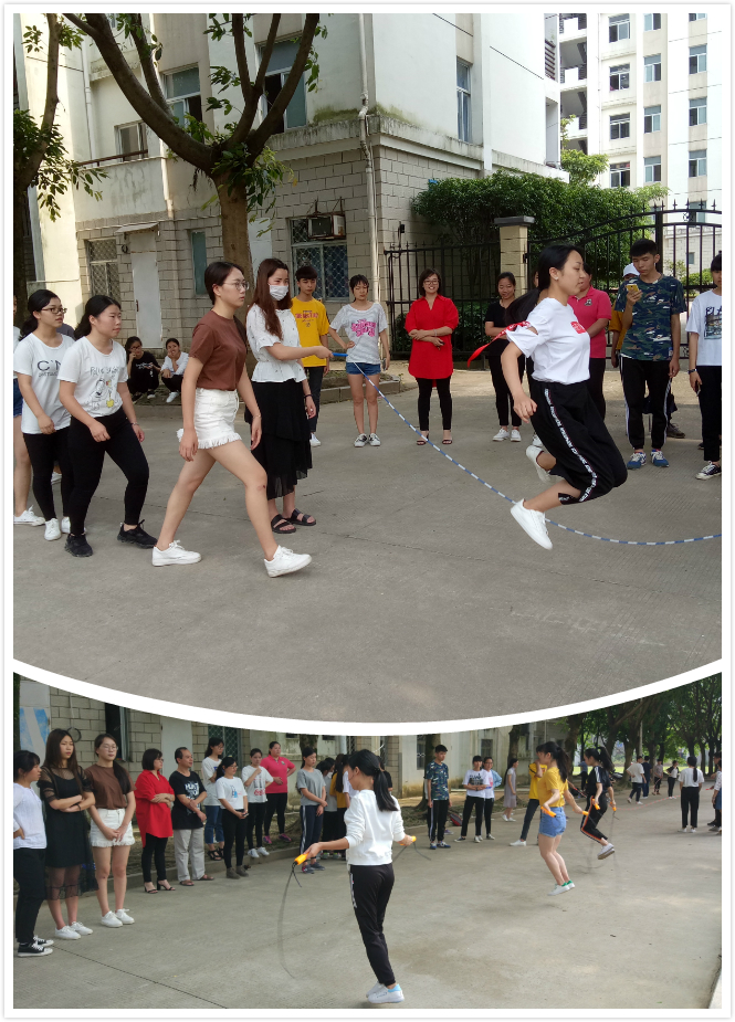 5月17日下午,管理系學生會體育部在學生宿舍13號樓后空地舉辦了跳繩競技比賽。系辦公室主任黃興宇老師、團總支書記邱麟老師和團總支副書記馮瑞華老師前來觀賽,2016級四個班級選手參賽。