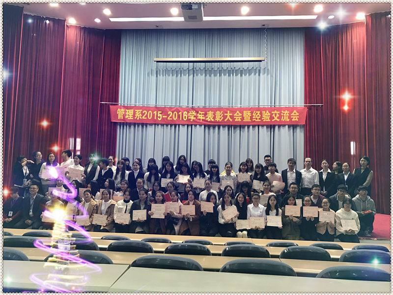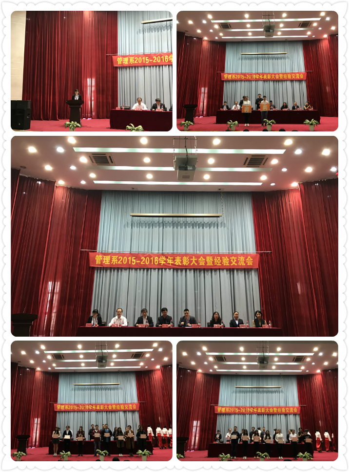 2017年1月7日下午1點,管理系在學術廳召開2015-2016學年表彰大會暨經驗交流會。此次到場的嘉賓有學生工作處葉海處長、管理系黨總支艾松軍副書記、莊海林副主任、辦公室黃興宇主任、計算機教研組陳遠懷主任、預防醫學教研組揭金花主任、營養與美容教研組吳晶主任,團總支副書記馮瑞華老師系部分教職工及全體學生出席。本次表彰大會由艾松軍副書記主持。