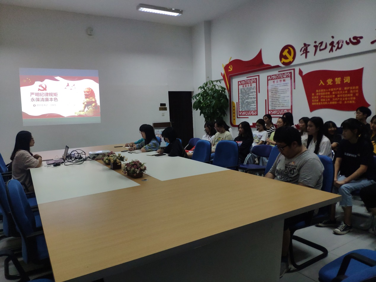 此外,我系團總支書記馮瑞華老師于9月23日下午,以“嚴明紀律規矩,永葆清廉本色”為主題,將“廉政”與大學生生活緊密結合,為我系團學干部上了一堂深入淺出的廉學課。團總支書記馮瑞華老師結合自身理解及經歷,剖析了廉政的意義及對當代大學生在學習、工作、生活上的啟示,講解平易近人,幽默風趣。同時,通過觀看《人民的名義》影視片段,針對團學干部入職以來的工作實際情況,既是給大家作一次廉潔提醒,也是一次關愛談心,既是警示教育的過程,也是學習勉勵的過程,借此增強各團學干部對廉潔知識的了解和對黨規黨紀的敬畏,讓我系團學干部在團學工作進行時牢固樹立廉潔從事理念,培養優良工作作風養成。