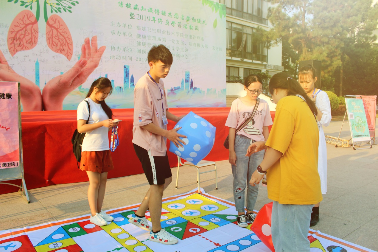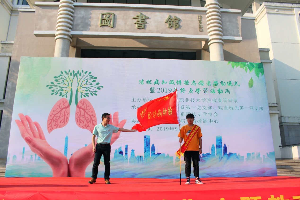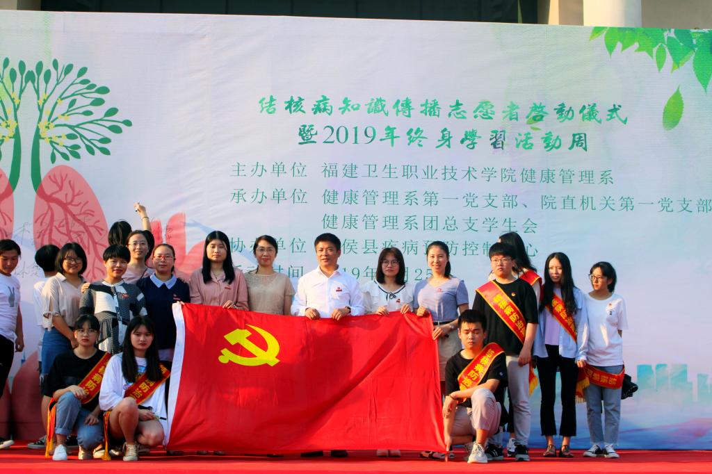 2019年9月25日,由健康管理系主辦,管理系第一黨支部、院直機關第一黨支部、健康管理系團總支承辦的“志愿者結核病防治知識傳播啟動儀式暨2019年終身學習活動周”在福建衛生職業技術學院圖書館廣場舉行。此次活動是根據福建省終身教育促進委員會關于開展2019年“9?28終身教育活動日”暨全民終身學習活動周的通知精神并響應福建省衛生計生委推動結核病防治知識傳播活動的號召,在學校組建結核病防治宣傳活動志愿團隊,發揮學生專業技能,推進健康中國建設,大力提高國民素質,并提高學生為人群健康服務的意識和決心。活動得到了閩侯縣CDC的大力支持,閩侯縣疾控中心江仁銜主任、福建省疾病預防控制中心黃智忠副主任醫師、院團委黃曦書記、健康管理系黨政負責人等參加活動。