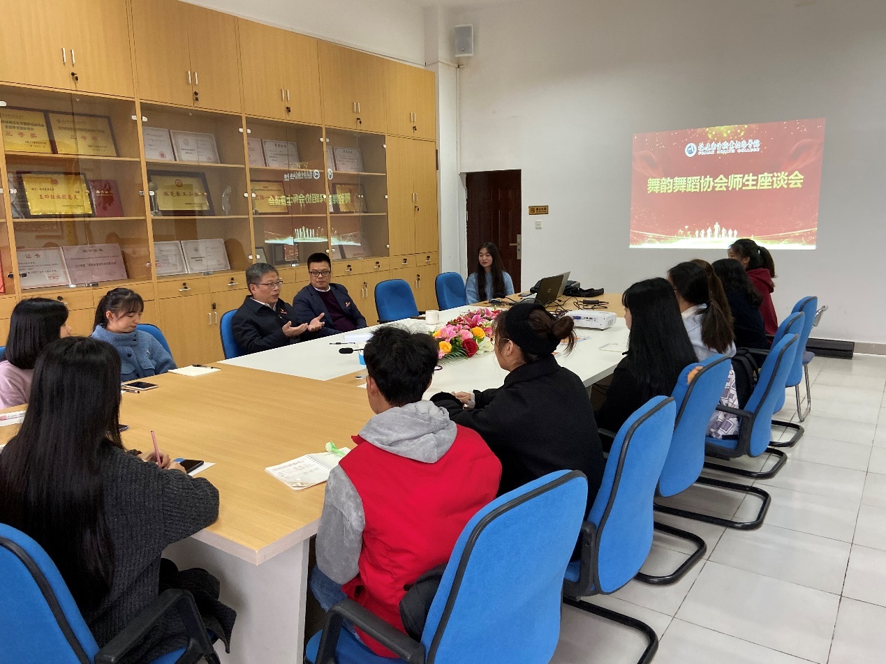 2019年12月19日,我校舞韻舞蹈協(xié)會召開社團(tuán)專題會議,對2019年社團(tuán)工作情況進(jìn)行總結(jié),并召開座談會,對未來發(fā)展進(jìn)行探討。學(xué)院黨委陳貞健副校長、健康管理系艾松軍書記、舞韻舞蹈社團(tuán)指導(dǎo)老師吳若云、舞韻舞蹈社團(tuán)干事代表及19屆社團(tuán)代表參加了會議。