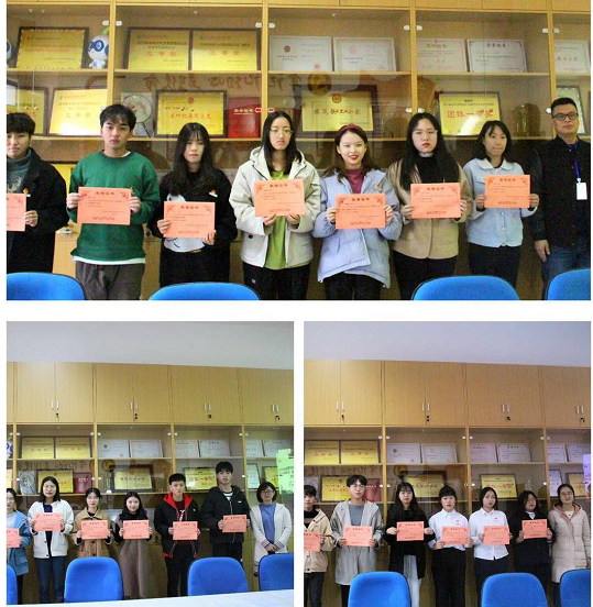 管理系黨總支艾松軍書記,管理系第二黨支部書記,團總支書記馮瑞華老師,管理系團總支副書記趙茜老師,分別為獲獎?wù)哳C獎并合影留念。