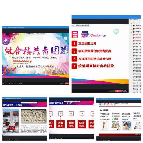 下午四點整,團課培訓正式開始,本次團課由健康管理系團總支書記趙茜老師主講,主題為“做一名合格的共青團員”。首先趙茜老師帶領全體學員重溫團的歷史,解讀團章團史,增強了學員們對黨、團的了解和認識,明確了當代青年的使命和職責。緊接著,從“七個方面”為學員們深入講解如何發揮團員的帶頭模范作用,最后,趙茜老師分別從錯峰返校、錯峰上課、錯峰就餐與宿舍和個人衣物等方面向學員們普及了開學后該如何正確做好自我防控。