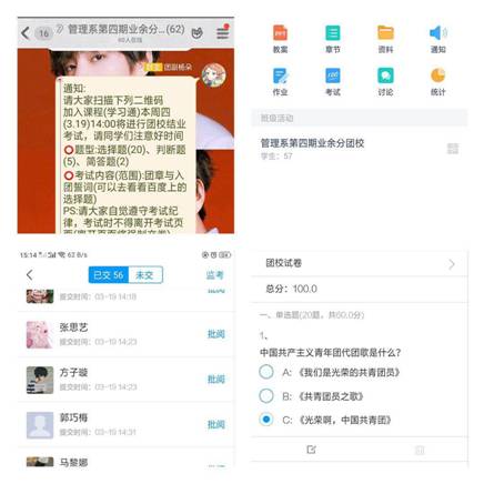 參加本次團校學(xué)習(xí)175名學(xué)員參加了考試。此次考試主要圍繞習(xí)近平新時代中國特色社會主義思想和新時期共青團所肩負(fù)的歷史使命以及團的組織建設(shè)、團員的權(quán)利與義務(wù)、共青團性質(zhì)、入團誓詞、共青團的奮斗目標(biāo)、團徽構(gòu)成以及象征、團史團章等諸多方面進行考察。所考知識點全面,將大家平時培訓(xùn)所學(xué)的大體理論體系都舉列于卷面,基本能檢測出學(xué)員平時掌握知識的情況。雖然是線上考試,但是在考試過程中,每位學(xué)員們都自覺遵守考場紀(jì)律、誠信應(yīng)考,認(rèn)真答題。此次業(yè)余分團校培訓(xùn)班結(jié)業(yè)考試本著公平、公正、公開的原則,為廣大學(xué)員營造一個良好的學(xué)習(xí)氛圍。