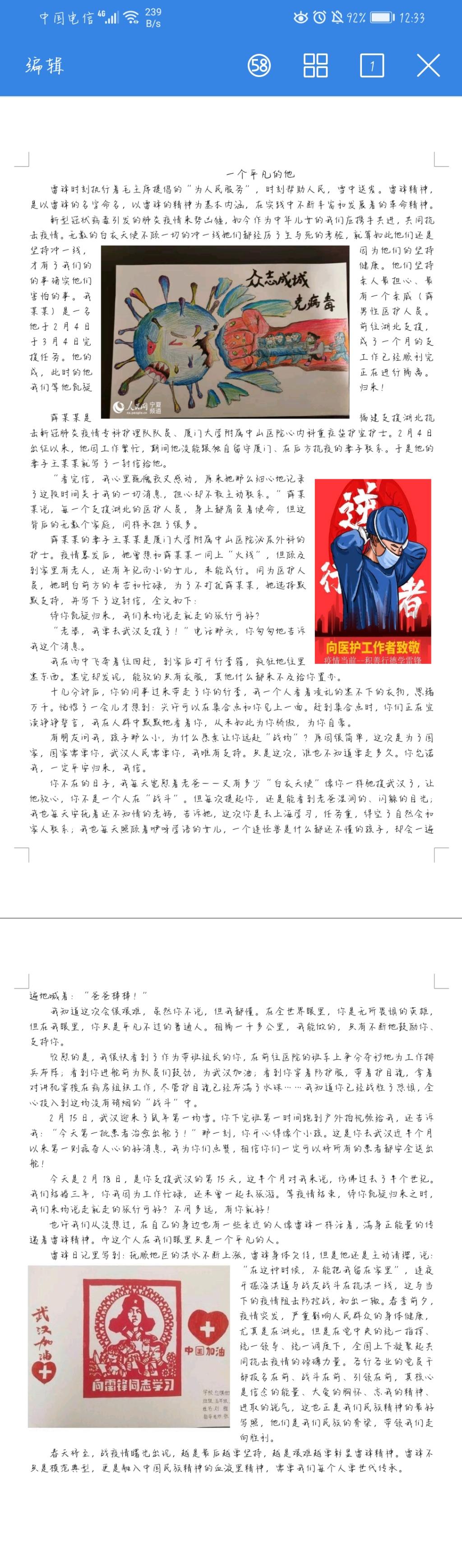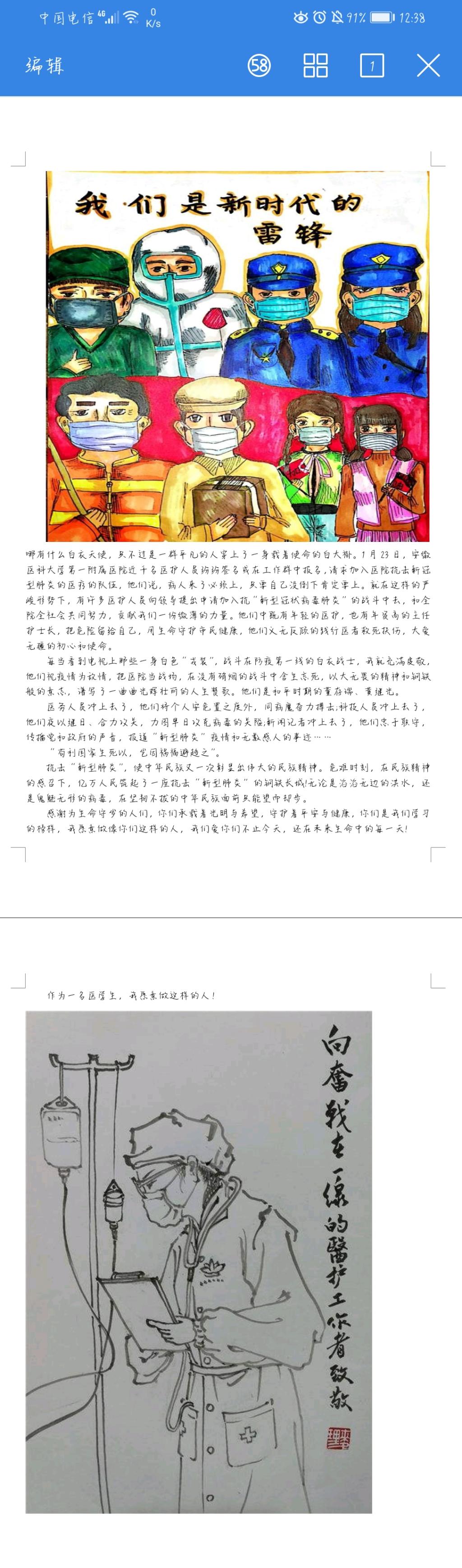 18、19級各班同學的積極參與此次比賽,系易班站收到廣泛來稿,作品盡數體現了同學們以個人獨特視角對這場疫情阻擊戰的所聞所見所感,也體現了同學們愿意貢獻自己一份力量的決心。在大家的作品中我們發現了一些特殊人群的縮影:為抗疫甘當志愿的青年戰士、為抗疫投筆宣傳防疫知識的文人墨士,他們用自己的實際行動寄托他們對祖國的美好的祝愿。在災難面前,他們都是大美之人,都是敢于為國家奉獻的人,他們是最可愛的人。我們這個充滿愛與力量的國家,在戰“疫”面前,大家精誠團結,萬眾一心共克時艱。