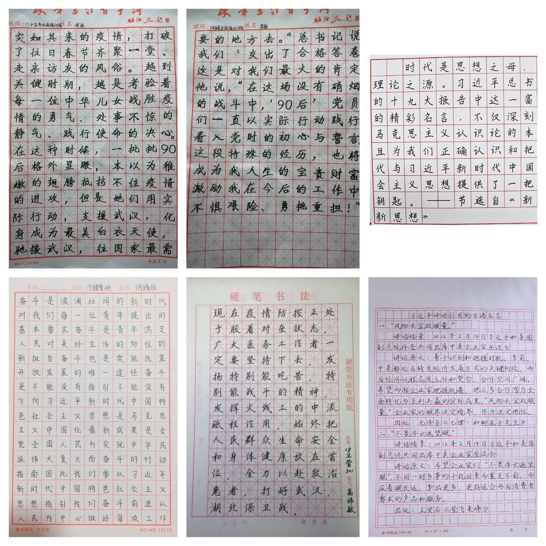 本次比賽,通過線上廣泛宣傳得到同學們的積極響應,各班同學們積極參加,向我們展示了許多優秀的作品。在整個比賽的過程中,參賽選手們均圍繞著“學習新思想,書寫新時代”的主題,用硬筆書法、毛筆書法等形式展示出一系列優秀作品。這些書法作品或行云流水、或筆走龍神,根據比賽規則以及評分標準,最終評選出17余副優秀的作品。