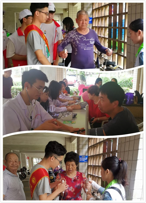 本次活動,主要分為營養調查、義診及有獎互動環節。活動開始前,老師與志愿者們通過橫幅宣傳、懸掛各類營養知識海報的形式向社區居民展示膳食寶塔、膳食指南等日常膳食營養知識。